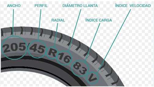 Las inscripciones del tamaño del neumático suelen incluir tres números, como "205/55 R16". El primer número (205) representa el ancho del neumático en milímetros, el segundo número (55) indica la relación entre la altura del perfil y el ancho, y la letra "R" significa que es un neumático radial. El último número (16) representa el diámetro de la llanta en pulgadas.